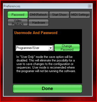 Password can be set so that other users or DJs cannot alter the show. In addition there is an easy and quick Backup and Restore system.